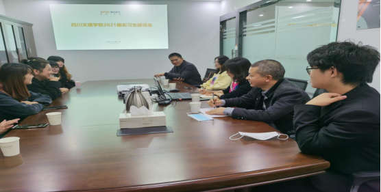 座谈会结束后,融创四川分公司周波总经理首先对员工前期的表现作了充分肯定,对同学们遇到的困难和问题积极关切,周波总经理希望在接下来能够与学校共探讨、探索校企合作新模式,共同培养适应行业、企业需要的专业人才。陈熙隆带队与融创四川分公司进行了沟通协调,针对目前同学们反馈的一些问题与实习单位作了充分的沟通,并就初始阶段的实习情况、员工表现以及专业与行业需求、人才培养等方面与企业进行了深度交流。